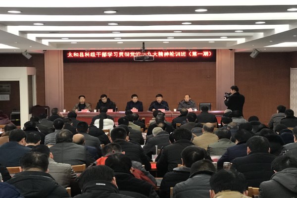 1月3日, 太和縣領(lǐng)導(dǎo)干部學(xué)習(xí)貫徹黨的十九大精神第一期集中輪訓(xùn)班開班式在縣委黨校舉行,開班式由縣委常委、宣傳部長(zhǎng)孫秀劍主持,縣委副書記、政法委書記、黨校校長(zhǎng)潘江徽出席開班式并講話。