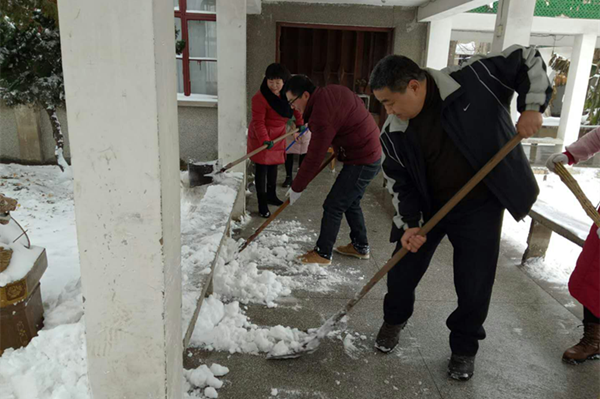 2018年元旦假期過后,阜城普降大雪,由于氣溫驟降,路面出線大面積積雪結(jié)冰現(xiàn)象,給廣大群眾和老干部活動辦事帶來極大不便。區(qū)委老干部局黨支部決定提前開展黨員活動日,號召全體黨員開展除雪活動。1月5日上午,在黨支部的號召下,四個黨小組分組活動,組織黨員干部14人,攜帶鐵鍬、掃把等工具掃雪鏟冰。同志們不畏嚴(yán)寒,積極參與,迅速在院內(nèi)清除了一條條愛心路,保證了老干部的出行活動安全。