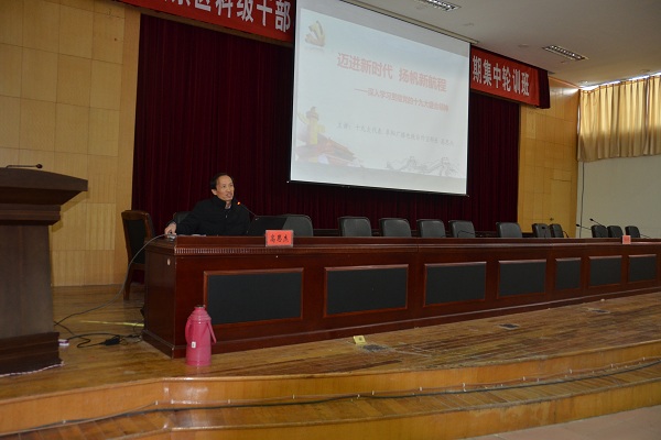 隨后,市委黨校副校長(zhǎng)黃家盛、市廣播電視臺(tái)對(duì)外宣傳科科長(zhǎng)高思杰分別以《解讀十九大新黨章》、《邁進(jìn)新時(shí)代 揚(yáng)帆新航程》為題授課。