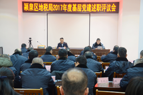 1月15日,潁泉區(qū)地稅局召開2017年度基層黨建述職述評會,總結(jié)交流黨建工作經(jīng)驗,查找工作短板,更好的謀劃2018年區(qū)局黨建工作,全面推動基層黨建工作任務(wù)落實。