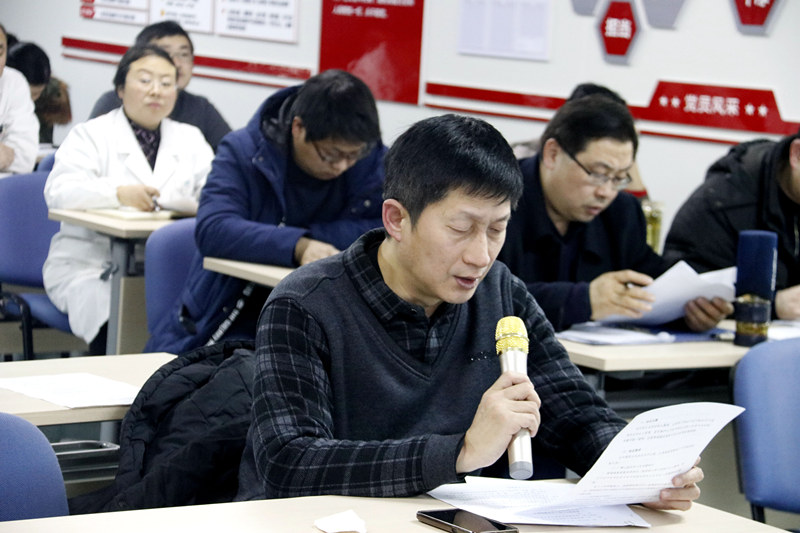 在總結(jié)講話中,冉獻(xiàn)貴對各黨支部提出幾點要求。第一,持續(xù)不懈抓黨建。2018年各支部要以院黨委為領(lǐng)導(dǎo),以學(xué)習(xí)十九大精神為主線,細(xì)學(xué)、深悟、實干,創(chuàng)新學(xué)習(xí)形式,借助業(yè)務(wù)優(yōu)勢,廣泛號召青年群體,大張旗鼓開展黨建工作。第二,發(fā)揮好戰(zhàn)斗堡壘作用。黨的宗旨是為人民服務(wù),對醫(yī)院來說即提升技術(shù)、發(fā)展學(xué)科、培養(yǎng)人才,更好地服務(wù)廣大患者。各黨支部要保證黨的方針政策在所屬各科室的貫徹執(zhí)行,促進(jìn)各項業(yè)務(wù)工作按時按質(zhì)按量完成。第三,聚焦醫(yī)改工作的推動與落實。各支部要在當(dāng)下醫(yī)改攻堅階段做好青年思想工作,鼓勵獻(xiàn)計獻(xiàn)策,群策群力化解醫(yī)改阻力,攻克醫(yī)改難題。第四,營造風(fēng)清氣正的環(huán)境氛圍。每位黨員尤其是支部班子成員要有身份意識,注重言行,傳遞正能量,凝聚向心力,在維護(hù)醫(yī)院正面形象上作出表率。第五,樹立黨員干部責(zé)任感。院黨委各項工作的順利完成離不開各支部的帶動,各黨支部書記要充分發(fā)揮“支部建在科室上”這一優(yōu)勢,履職盡責(zé),利用好跨科室的管理權(quán)限,建立起溝通渠道,聯(lián)合發(fā)力,推動醫(yī)院的事業(yè)在新的一年更上一層樓。