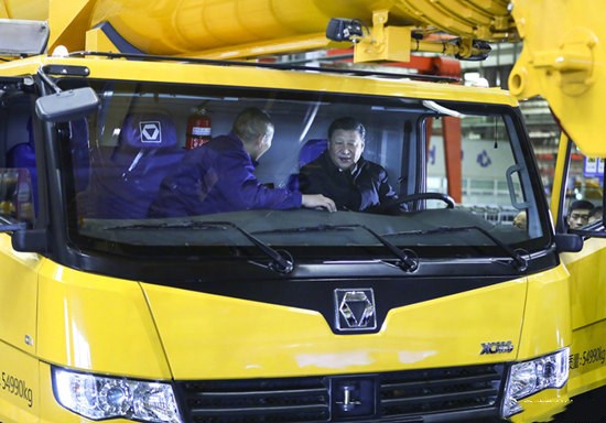 2017年12月12日下午,正在徐工集團(tuán)考察的習(xí)近平,坐進(jìn)剛下線的XCA220型全地面起重機(jī)駕駛室,向技術(shù)人員詳細(xì)詢問起重機(jī)的性能、產(chǎn)量、價(jià)格等。