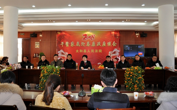 為充分發(fā)揮干警家屬在黨風(fēng)廉政建設(shè)和反腐敗工作中的作用,進(jìn)一步促進(jìn)公正廉潔司法,2月6日,太和縣人民法院組織召開了以“樹立清廉家風(fēng)促進(jìn)公正司法”為主題的迎春干警家屬助廉座談會(huì)。院黨組成員、紀(jì)檢組長(zhǎng)尚福中主持會(huì)議,黨組書記、院長(zhǎng)吳靜出席座談并講話,黨組副書記劉獻(xiàn)忠,部分干警及其家屬參加座談。