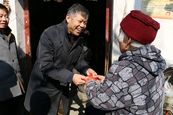 當天下午,中國科學技術(shù)大學附屬第一醫(yī)院(安徽省省立醫(yī)院)30余人來到對口幫扶的柘樹莊村村委,給37戶貧困戶,每戶送上1床棉被、200元慰問金,希望貧困戶們能過上一個幸福祥和的春節(jié)。