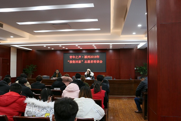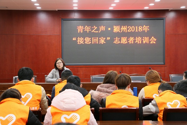 為積極響應團市委在市委、市政府“接您回家”系列活動中對青年志愿者的號召,更好的發(fā)揮潁州青年志愿者在“接您回家”活動中的作用,團區(qū)委利用志愿匯APP及微信公眾號公開招募了50名青年志愿者,2月6日,團區(qū)委組織召開了志愿者培訓會。