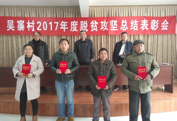 接著,劉群宣讀了《吳寨村關(guān)于表彰2017年度脫貧攻堅(jiān)獎(jiǎng)的決定》,頒發(fā)了光榮證書(shū),特別是脫貧人員代表進(jìn)行了典型發(fā)言,用最樸實(shí)的語(yǔ)言講述了自己的脫貧經(jīng)歷,高度贊揚(yáng)了國(guó)家扶貧政策好、幫扶干部作風(fēng)實(shí),并深切感慨好日子要靠自己奮斗得來(lái)才最踏實(shí)、最幸福。