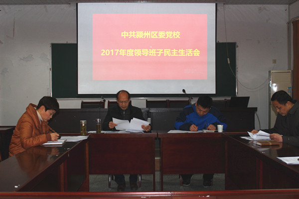 2月13日,潁州區(qū)委黨校召開2017年度領(lǐng)導(dǎo)班子民主生活會(huì),黨校班子全體成員參加。會(huì)議由區(qū)委組織部副部長(zhǎng)、黨校校長(zhǎng)李宗獻(xiàn)主持,區(qū)紀(jì)委駐組織部紀(jì)檢組組長(zhǎng)韓洪濤到會(huì)指導(dǎo)。