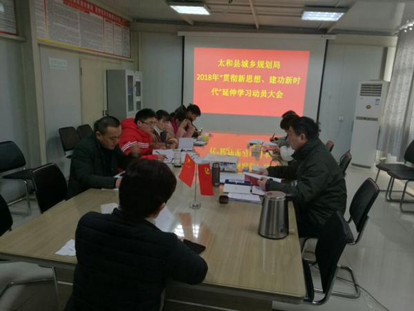 為響應(yīng)縣春季干部培訓(xùn)班會議精神,收人心、起好步,2月26日,太和縣規(guī)劃局召開2018年“貫徹新思想、建功新時(shí)代”延伸學(xué)習(xí)動員會,縣規(guī)劃局局長劉強(qiáng)華、各股室負(fù)責(zé)人及全體黨員干部參加了會議。