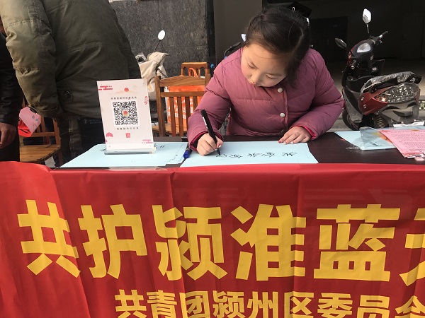 線下活動有聲有色。于2月9日至2月11日,在汽車西站、潁州萬達廣場、商廈時代廣場、寶龍廣場、大潤發(fā)等人流密集處,相繼開展了“不放炮 不焚香 共護潁淮藍天”為主題的集中宣傳活動。
