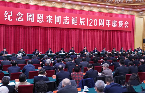 中共中央1日上午在人民大會堂舉行座談會,紀念周恩來同志誕辰120周年。中共中央總書記、國家主席、中央軍委主席習近平發(fā)表重要講話強調,新時代中國特色社會主義的航線已經(jīng)明確,中華民族偉大復興興的巨輪正在乘風破浪前行。周恩來同志青年時代曾經(jīng)寫下這樣的寄語:“愿相會于中華騰飛世界時?!苯裉?,我們可以告慰周恩來同志等老一輩革命家的是:近代以來久經(jīng)磨難的中華民族迎來了從站起來、富起來到強起來的偉大飛躍。周恩來同志生前念茲在茲的中國現(xiàn)代化的宏偉目標,一定能夠在不遠的將來完全實現(xiàn)。