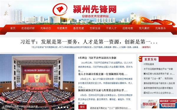 近年來(lái),潁州先鋒網(wǎng)作為“安徽先鋒網(wǎng)”網(wǎng)絡(luò)體系的延伸和拓展,緊跟網(wǎng)絡(luò)時(shí)代潮流,給新時(shí)期黨的建設(shè)增添了新的生機(jī)和活力,積極推動(dòng)信息技術(shù)與黨建工作的融合,大膽探索網(wǎng)絡(luò)黨建工作,有效提升全區(qū)黨建工作科學(xué)化水平。