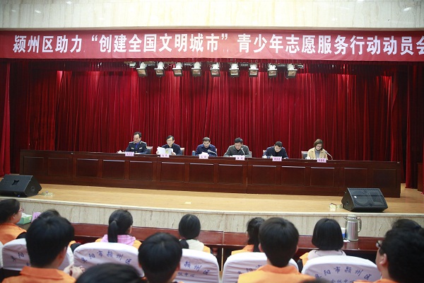 為進(jìn)一步弘揚(yáng)雷鋒精神和志愿者精神,引導(dǎo)廣大青少年積極投身全市創(chuàng)建全國文明城市行動(dòng),3月19日,潁州區(qū)召開助力創(chuàng)建“全國文明城市”青少年志愿服務(wù)行動(dòng)動(dòng)員會(huì),區(qū)委常委、宣傳部長(zhǎng)高超,區(qū)文明辦主任譚學(xué)詩、區(qū)教育局局長(zhǎng)白莽、團(tuán)區(qū)委書記朱海利、區(qū)城鄉(xiāng)管理行政執(zhí)法局副局長(zhǎng)姚啟志出席會(huì)議。區(qū)各鄉(xiāng)鎮(zhèn)街道、潁州經(jīng)濟(jì)開發(fā)區(qū)分管負(fù)責(zé)同志、團(tuán)(工)委負(fù)責(zé)人;區(qū)直有關(guān)單位團(tuán)組織、青工委負(fù)責(zé)人;區(qū)直各中小學(xué)、各鄉(xiāng)鎮(zhèn)街道中心校分管負(fù)責(zé)人、團(tuán)隊(duì)負(fù)責(zé)人;部分非公企業(yè)團(tuán)組織負(fù)責(zé)人、青年志愿者代表、結(jié)對(duì)共建社區(qū)代表、志愿服務(wù)組織代表參加會(huì)議。區(qū)政府副區(qū)長(zhǎng)杜剛主持會(huì)議。
