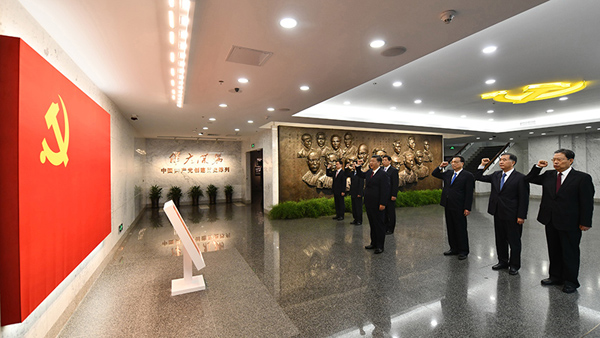 2017年10月31日,習近平和李克強、栗戰(zhàn)書、汪洋、王滬寧、趙樂際、韓正,從北京乘專機來到上海,集體瞻仰中共一大會址,回顧黨的光輝歷程,學習革命先輩的崇高精神,并重溫入黨誓詞。