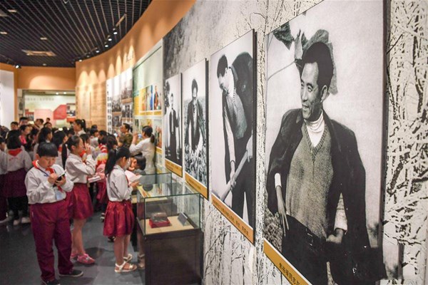 2017年5月14日,小學生在蘭考縣的焦裕祿紀念館參觀。當日是焦裕祿同志逝世53周年紀念日。河南省蘭考縣各界群眾來到焦裕祿紀念園,表達他們對焦裕祿的懷念之情。