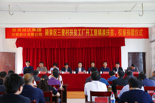 儀式上,潁泉區(qū)委副書記熊曉珍、行流鎮(zhèn)黨委書記李龍山、市委組織部副部長朱洪亮、市紀(jì)委副書記梁國順先后致辭發(fā)言,香港麗達(dá)集團(tuán)向建檔立卡貧困戶學(xué)生捐贈(zèng)了價(jià)值31萬多元的2252套學(xué)生校服, 向?qū)趲头龅?0戶貧困戶捐贈(zèng)現(xiàn)金1萬元。