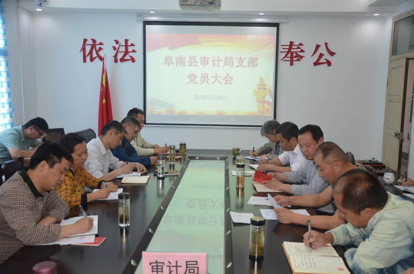 5月8日,阜南縣審計局黨支部召開支部黨員大會,共25名局機關黨員參加了會議,會議由局黨支部副書記潘光禮主持,共有四項議程。