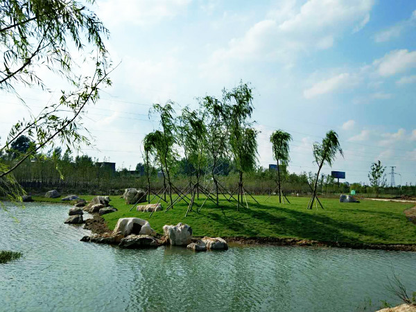 (圖為宋集鎮(zhèn)楊蒲村“千畝槐樹”主題公園一角)