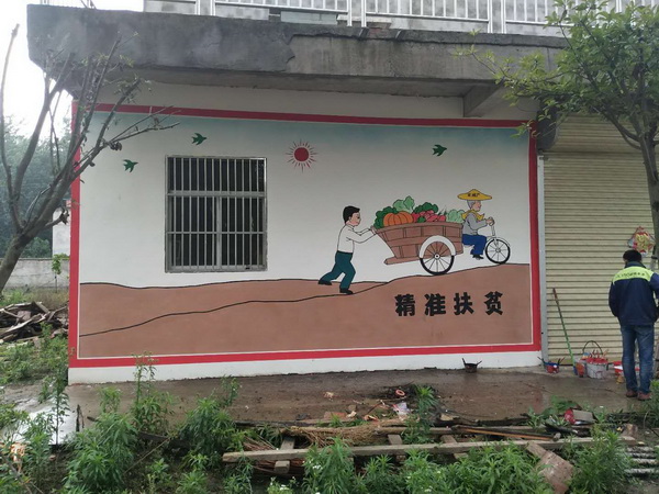 繪制文化墻,不僅美化了村莊道路,還以群眾喜聞樂見、易于接受的形式和內容,提高村民的精神文化生活品位,營造積極向上、歡樂祥和的生活氛圍,讓群眾從精神文化上走出貧困,奔上小康。