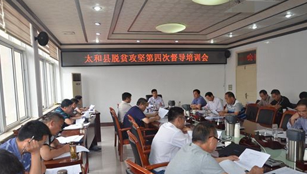 2018年5月28日,太和縣召開脫貧攻堅第四次督導培訓會,六個督導組全體成員參加會議,縣委常委、副縣長海治國主持會議并講話。