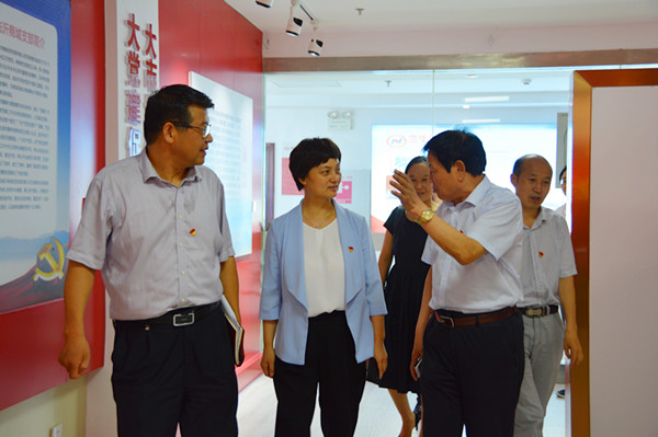 授牌儀式結(jié)束后,關(guān)宏一行參觀了阜陽臨沂商城黨建活動室,了解黨支部標(biāo)準(zhǔn)化建設(shè)情況。