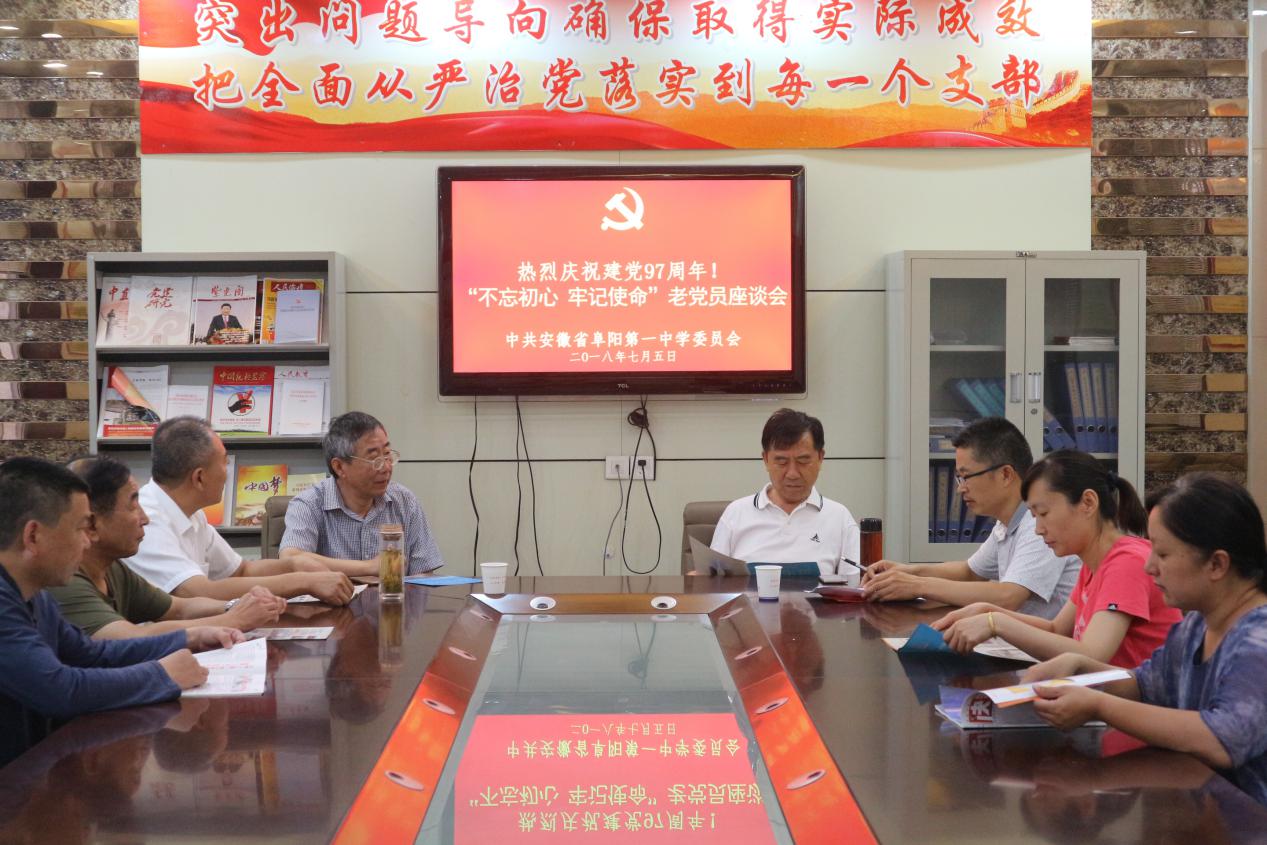 7月5日,阜陽一中召開慶祝建黨97周年系列活動(dòng)之“不忘初心 牢記使命”老黨員座談會(huì),向老黨員代表通報(bào)上半年學(xué)校工作情況,了解他們的學(xué)習(xí)、生活情況,征求他們對(duì)學(xué)校教育改革的建議和意見,匯聚力量,推動(dòng)學(xué)校各項(xiàng)事業(yè)取得新進(jìn)步、新發(fā)展。阜陽一中黨委委員、紀(jì)委書記王文淵主持座談會(huì)。