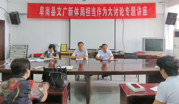 7月10日,阜南縣委組織部人才辦主任祝永華深入到縣文廣新體局,就如何貫徹落實(shí)中共中央辦公廳《關(guān)于進(jìn)一步激勵(lì)廣大干部新時(shí)代新?lián)?dāng)新作為的意見》文件精神,進(jìn)行專題輔導(dǎo)。