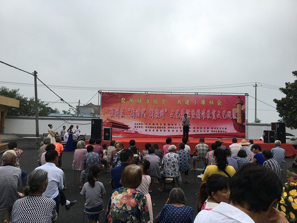 演出以熱情洋溢的歌伴舞《不忘初心》開場;方言快板《再保障工程暖人心》精彩活潑,宣傳了區(qū)綜合醫(yī)療“8579”“1567”再保障政策;小品《懶漢脫貧》、《等你回家》,大鼓《孝道扶貧樹新風(fēng)》,以群眾喜聞樂見的方式展現(xiàn)了區(qū)精準(zhǔn)扶貧的產(chǎn)業(yè)扶貧、教育扶貧、孝道扶貧等政策;更有經(jīng)典豫劇《幸福歌》《洼洼地里好莊稼》清唱,演出以舞蹈《夸夸咱們社會(huì)主義新農(nóng)村》結(jié)束。雖然盛夏炎炎,但群眾熱情滿滿,紛紛表示演出節(jié)目精彩豐富,意猶未盡。