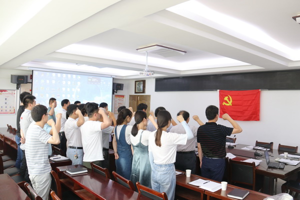 二是重溫一次入黨誓詞。在縣委組織部副部長、縣委非公工委書記張斌的領(lǐng)誓下,全體人員面對鮮紅的黨旗,舉起右拳,再一次重溫入黨誓詞,向黨旗莊嚴宣誓。教育黨員不忘初心、牢記使命,筑牢“講忠誠、嚴紀律、立政德”的思想根基。