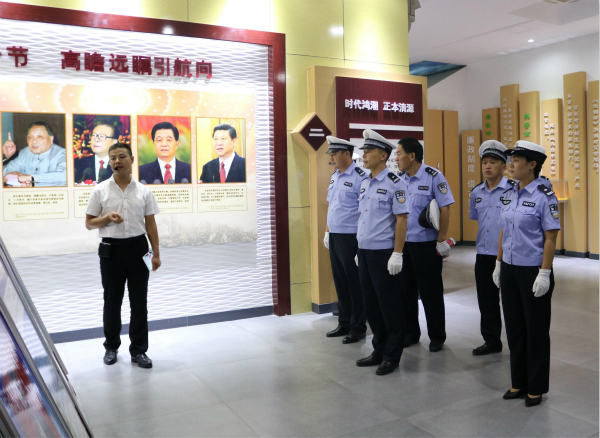 參觀完廉政教育基地,黨員民警來到“千里躍進(jìn)大別山”紀(jì)念館重溫入黨誓詞。