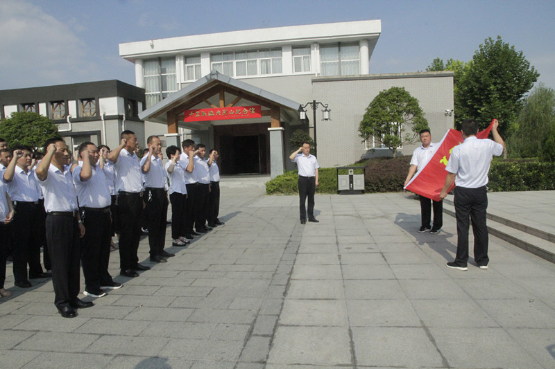 “我志愿加入中國共產(chǎn)黨……為共產(chǎn)主義奮斗終身,隨時準備為黨和人民犧牲一切,永不叛黨”。在革命烈士雕塑前,總公司黨員向烈士敬獻花籃,張傳峰為花籃整理了綬帶,并帶領(lǐng)全體黨員干部面對鮮紅的黨旗重溫了入黨誓詞。