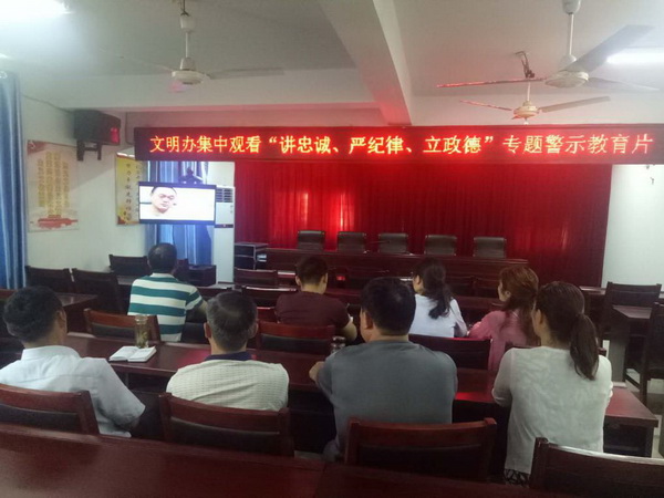為深入推進(jìn)“講忠誠(chéng)、嚴(yán)紀(jì)律、立政德”專(zhuān)題警示教育,扎實(shí)做好警示教育第一階段(學(xué)習(xí)促提高)工作。7月23日,阜南縣文明辦組織黨員干部集中觀(guān)看《沉迷“錢(qián)途”毀錢(qián)途》專(zhuān)題警示教育片。文明辦10名黨員干部參加觀(guān)看。