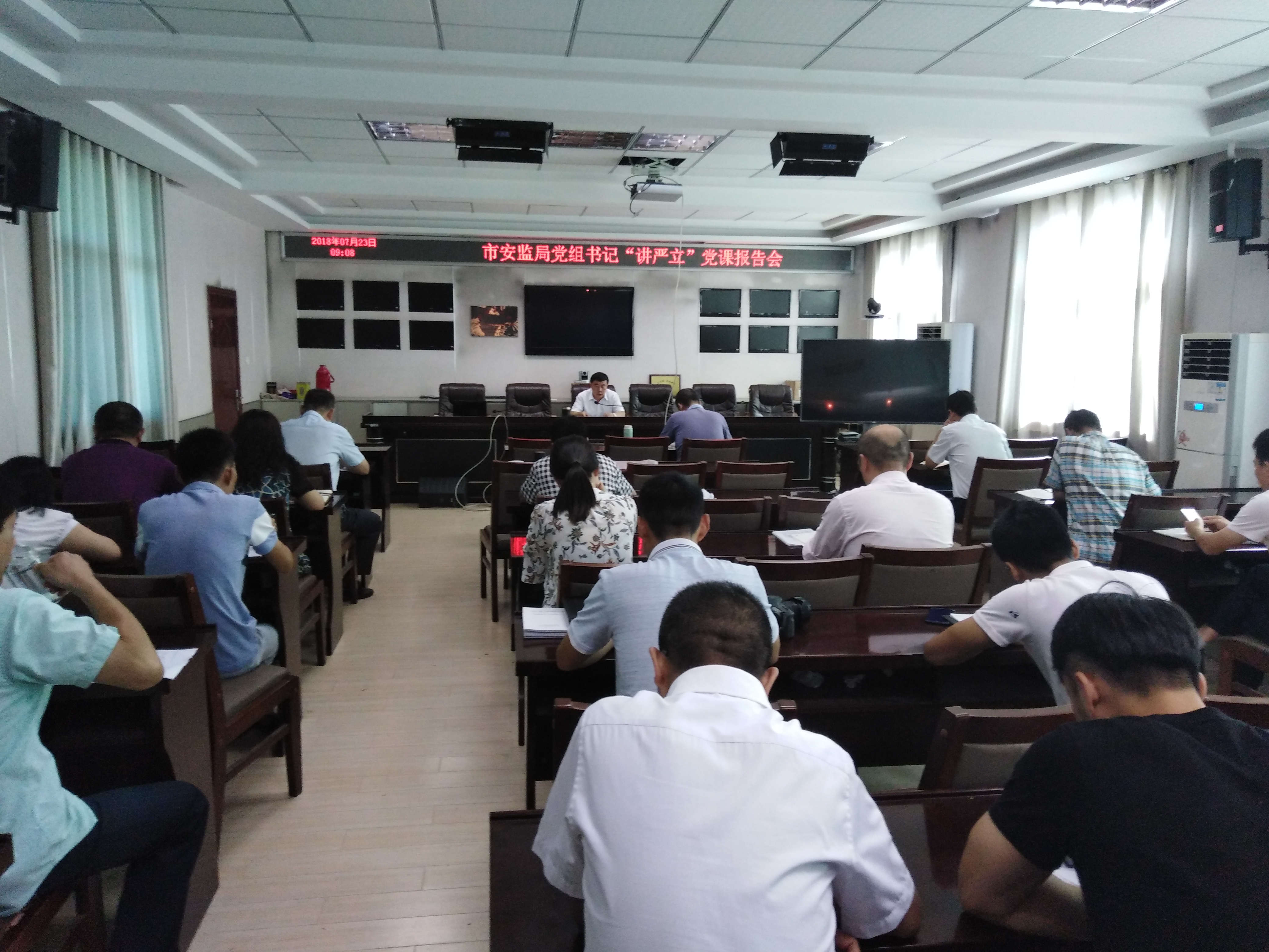市安監(jiān)局黨組書記李智結(jié)合“講忠誠、嚴紀律、立政德”專題教育活動,以《踐行“講嚴立”,鍛造忠誠干凈擔當?shù)陌踩O(jiān)管干部隊伍》為主題,給全體黨員上了一堂生動的黨課。局黨組全體成員參加此次黨課。
