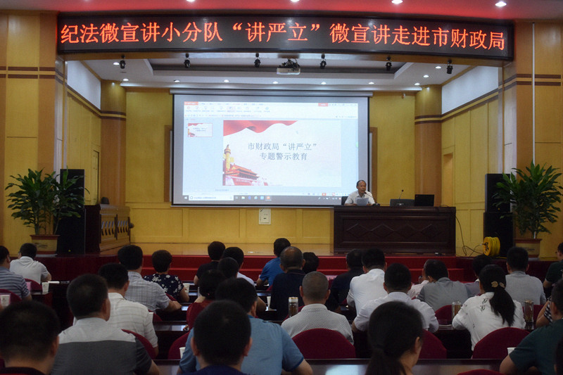 為貫徹落實(shí)省委、市委“講忠誠(chéng)、嚴(yán)紀(jì)律、立政德”專題警示教育工作部署,進(jìn)一步推進(jìn)市財(cái)政局警示教育扎實(shí)有效開(kāi)展,7月23日下午,市紀(jì)委監(jiān)委紀(jì)法微宣講小分隊(duì)走進(jìn)“潁淮大講堂·財(cái)政分講堂”開(kāi)展“講嚴(yán)立”專題警示教育微宣講。局領(lǐng)導(dǎo)班子成員、局機(jī)關(guān)全體黨員、局屬單位班子成員100多人聆聽(tīng)了宣講。