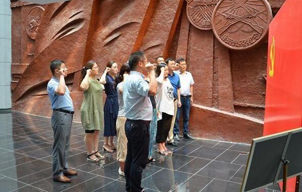 在一樓大廳大型浮雕旁,面對鮮紅的黨旗,全體黨員重溫入黨誓詞,表達了黨員的初心和使命擔當。
