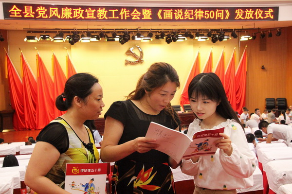 8月9日,阜南縣紀(jì)委監(jiān)委向全縣部分黨員干部發(fā)放警示教育讀本《畫說紀(jì)律50問》2000余本。