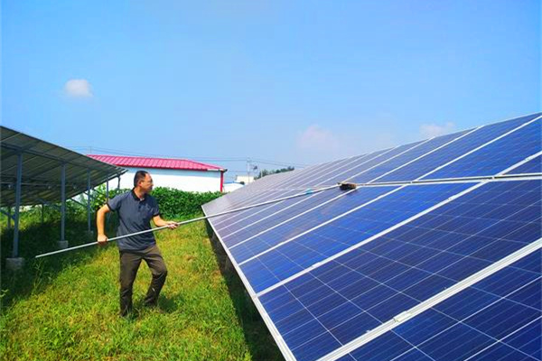 光伏發(fā)電為清潔能源,具有無污染、無輻射、使用壽命長、維護(hù)成本低等特點(diǎn),可為貧困戶帶來持久、穩(wěn)定收入。多發(fā)一度電,就能為貧困戶帶去多一份脫貧致富的希望。為確保項(xiàng)目良好運(yùn)行,提高光伏發(fā)電效能,最大程度上助力群眾脫貧致富,試驗(yàn)區(qū)自電站建成以來始終堅(jiān)持做好日常管護(hù)。購置除草機(jī)、長柄毛刷等裝備,出資聘請專人進(jìn)行管護(hù)外,還堅(jiān)持定期對電站運(yùn)行情況進(jìn)行檢查。