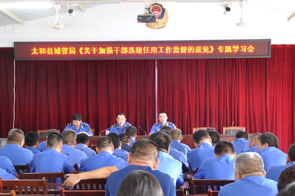 為落實全面從嚴治黨要求,進一步加強干部選拔任用監(jiān)督工作,提升干部整體素質(zhì),按照縣委組織部及政辦系統(tǒng)黨委要求,2018年8月13日上午,太和縣城管局組織召開《關于加強干部選拔任用工作監(jiān)督的意見》專題學習會,會議由城管局副局長翟峰主持,城管局全體人員參加會議。