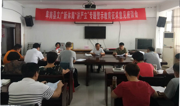 為高質(zhì)量地開好“講忠誠(chéng)、嚴(yán)紀(jì)律、立政德”專題警示教育專題民主生活會(huì),8月14日上午,阜南縣文廣新體局召開征求意見座談會(huì),廣泛征求對(duì)局班子及班子成員的意見和建議,局各股室、全體成員、二級(jí)單位負(fù)責(zé)人參加了座談會(huì)。