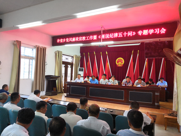 為增強(qiáng)黨員干部廉潔自律意識,強(qiáng)化紀(jì)律約束,2018年8月14日,阜南許堂鄉(xiāng)黨委組織召開黨風(fēng)廉政建設(shè)宣教工作暨《畫說紀(jì)律五十問》專題學(xué)習(xí)會,會議由鄉(xiāng)黨委副書記、鄉(xiāng)長耿傳軍主持,全體鄉(xiāng)村干部參加會議。