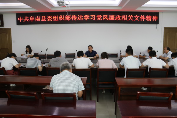 8月23日,阜南縣委組織部機(jī)關(guān)黨支部召開黨風(fēng)廉政專題學(xué)習(xí)會議,集中學(xué)習(xí)縣委、縣委辦及縣紀(jì)委印發(fā)的黨風(fēng)廉政相關(guān)文件精神??h委常委、組織部長、統(tǒng)戰(zhàn)部長孫國桃參加會議并講話,會議由辦公室主任劉剛主持。