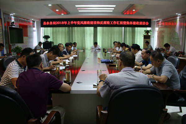 近日,阜南縣水務(wù)局召開(kāi)2018年上半年全縣落實(shí)黨風(fēng)廉政建設(shè)和反腐敗工作匯報(bào)暨集體廉政談話會(huì)。局黨組書(shū)記、局長(zhǎng)張彪主持會(huì)議,局班子成員及局屬各單位負(fù)責(zé)人參加會(huì)議。
