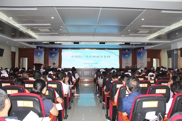 8月28日,太和縣人民醫(yī)院組織黨員干部集中學(xué)習(xí)《中國共產(chǎn)黨紀(jì)律處分條例》,全院黨員干部等參加。醫(yī)院黨委書記、院長祝振華主持,黨委委員、紀(jì)委書記徐莉領(lǐng)學(xué)。