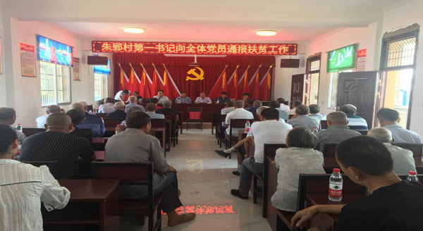 8月25日上午,朱郢村黨支部組織召開支部黨員大會,村第一書記、扶貧工作隊長蘇存杰向全體黨員通報扶貧工作。