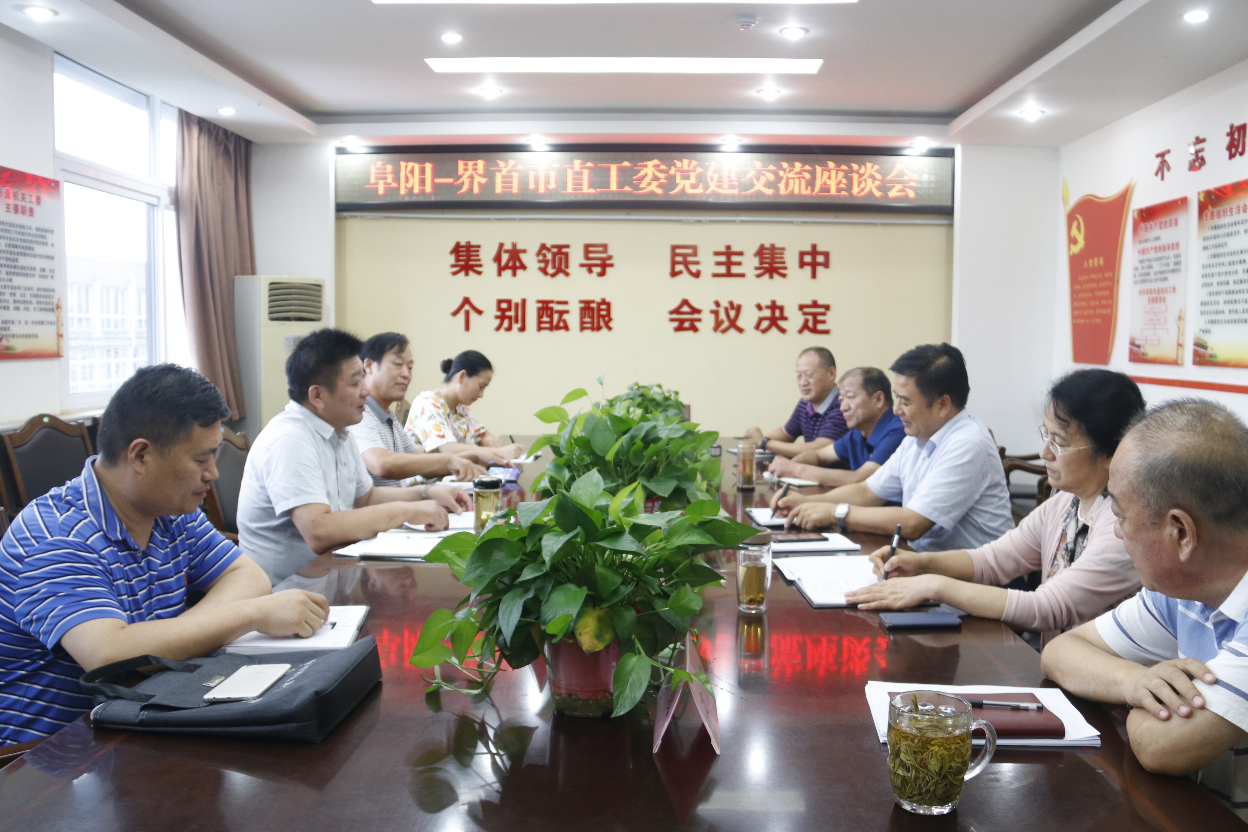 8月31日,界首市直工委書記張國鋒一行赴阜陽市直工委交流機關黨建工作,阜陽市直工委書記李濤主持座談會。工委副書記及相關部室負責人參加會議。