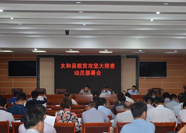 為迅速傳達(dá)貫徹落實省市脫貧攻堅大排查工作要求,9月18日,太和縣召開脫貧攻堅大排查動員部署會,縣委副書記、政法委書記潘江徽出席會議并講話,縣委常委、副縣長海治國主持會議。各鄉(xiāng)鎮(zhèn)黨委書記、分管扶貧工作負(fù)責(zé)人,縣直相關(guān)單位負(fù)責(zé)人參加會議。