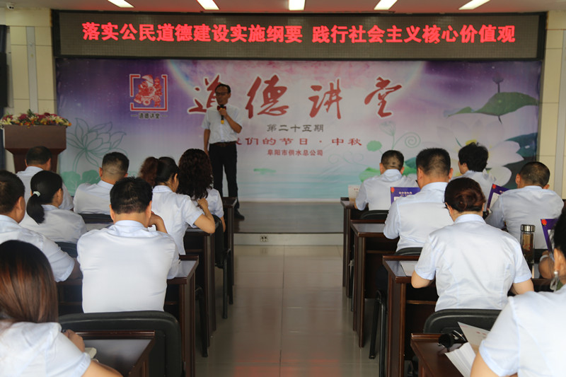 九月,秋風(fēng)送爽,丹桂飄香。在中秋、國慶雙節(jié)即將到來之際,為了更好地弘揚中華傳統(tǒng)文化,積極培育和踐行社會主義核心價值觀,市供水總公司于9月21日在五樓會議室組織開展了以“迎中秋 慶國慶”為主題的道德講堂活動??偣靖鞑块T百余名供水職工參加了活動。