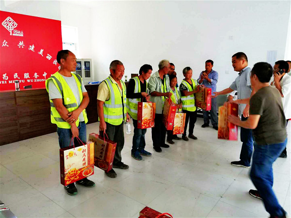 劉集村黨支部書記常廣率先發(fā)起,帶領(lǐng)支部成員為近期為了危房整治而不辭辛苦的貧困戶送上了香甜可口、色香味俱全的中秋月餅,鄭寨村、蔣莊村、東李郢村、李竹園村等村黨支部也緊跟步伐,為公益崗位人員送上了月餅、油等慰問品。