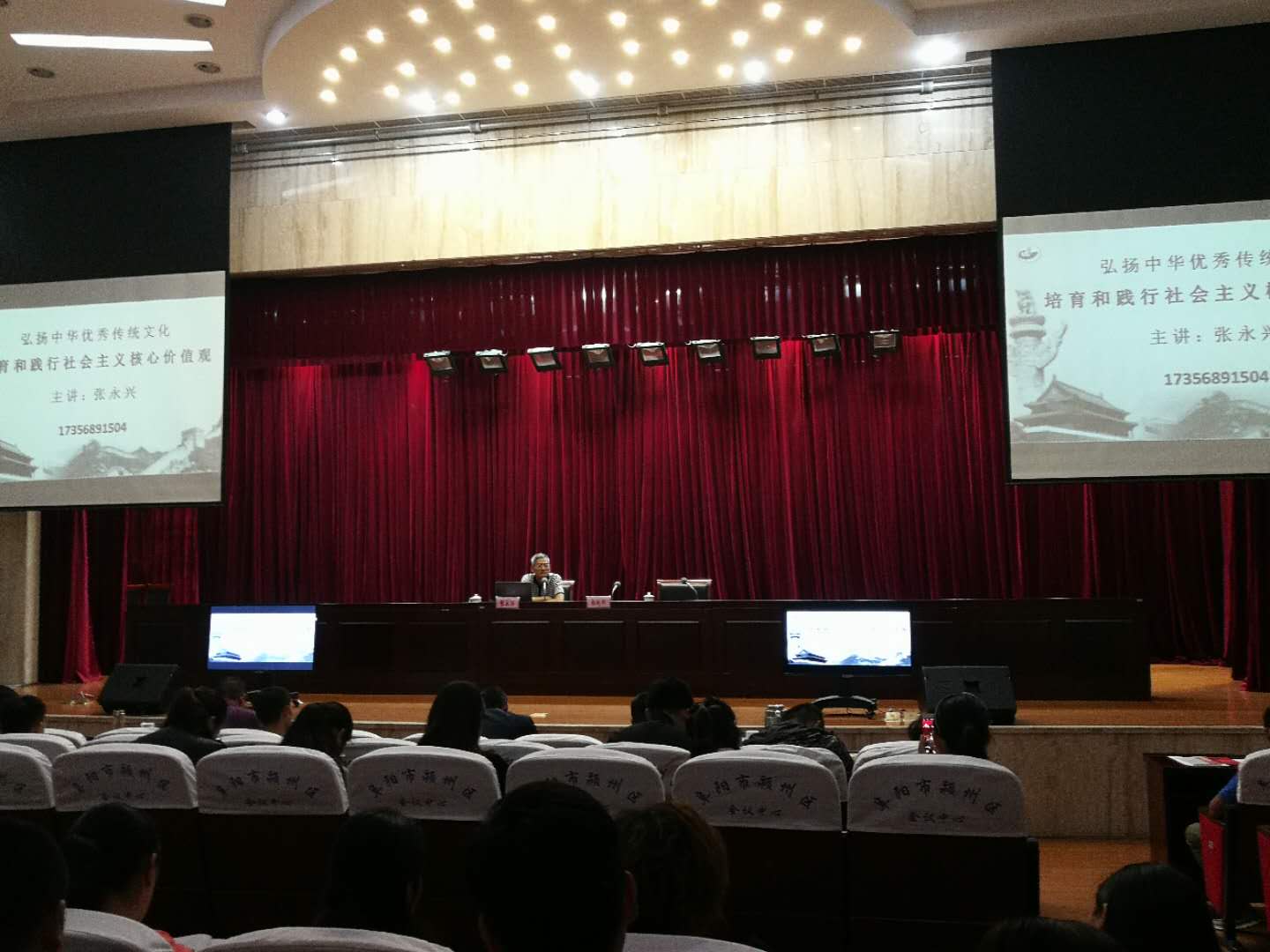 9月29日,潁州區(qū)委組織部、區(qū)直機(jī)關(guān)工委聯(lián)合舉辦“潁淮大講堂·潁州分講堂”專家講座,邀請(qǐng)國(guó)家教育行政學(xué)院家教講師、國(guó)家社會(huì)科學(xué)教育重點(diǎn)課題組國(guó)學(xué)講師、阜陽市青少年思想道德宣講團(tuán)講師張永興作《弘揚(yáng)優(yōu)秀傳統(tǒng)文化,培養(yǎng)和踐行社會(huì)主義核心價(jià)值觀》的專題報(bào)告。來自全區(qū)的入黨發(fā)展對(duì)象及區(qū)直機(jī)關(guān)部分黨務(wù)干部近200人聆聽講座。