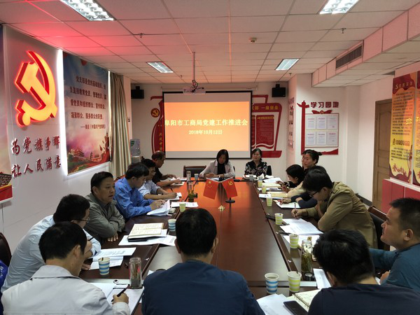 為進一步加強機關黨的建設,推進工作落實,10月12日下午,市工商局召開機關黨建工作推進會。市工商局黨組成員、機關黨委書記、副局長李永亮,市局所屬基層黨組織黨務工作者參加了會議。