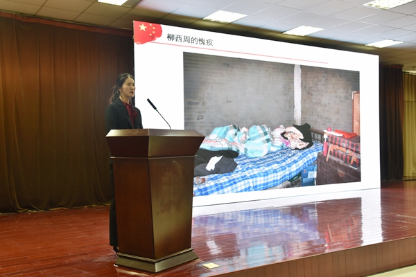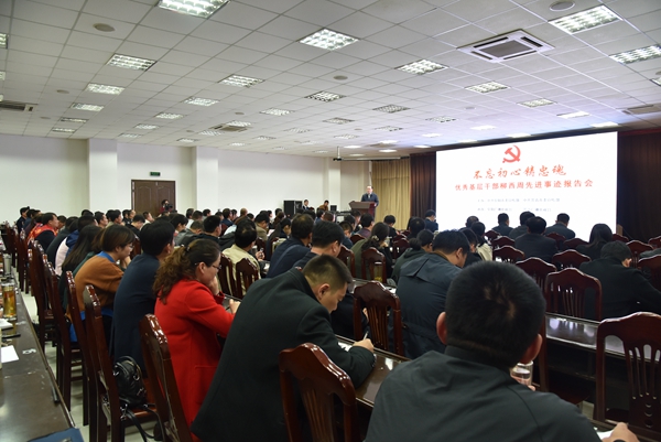 報告會上,四名報告團成員分別以“柳西周的最后十八天”“幫鄉(xiāng)親脫貧,咱不干誰干”“有困難找西周”“柳西周的愧疚”為主題,講述了柳西周32年來扎根基層、心系群眾、無私奉獻的感人故事,事跡感人肺腑、催人奮進,深深打動了與會的黨員干部同志。